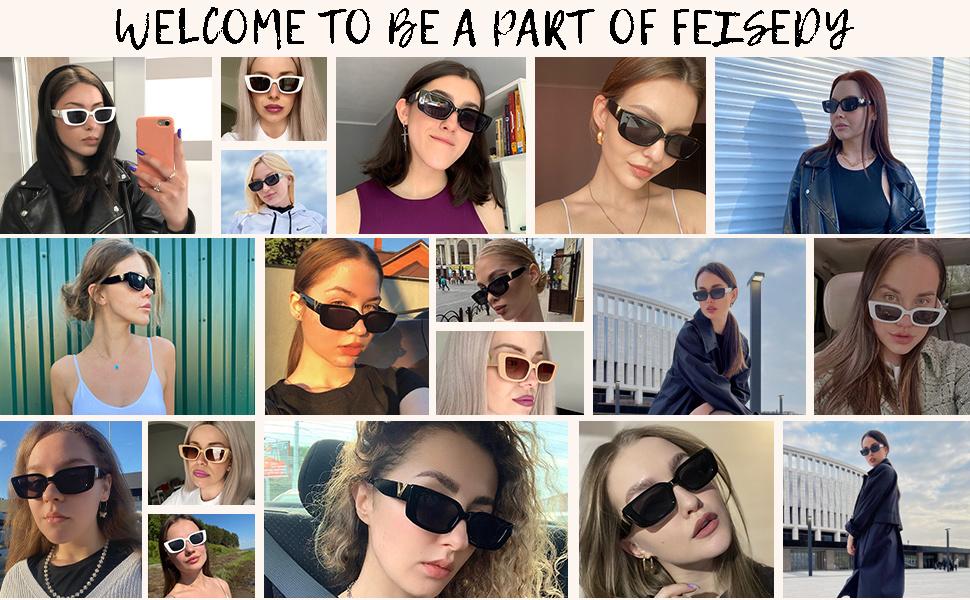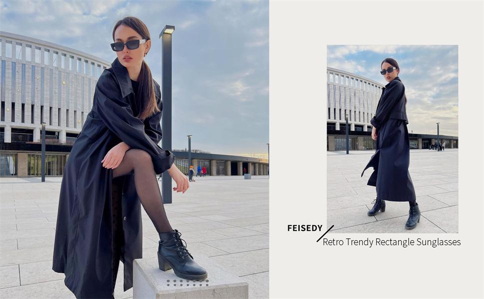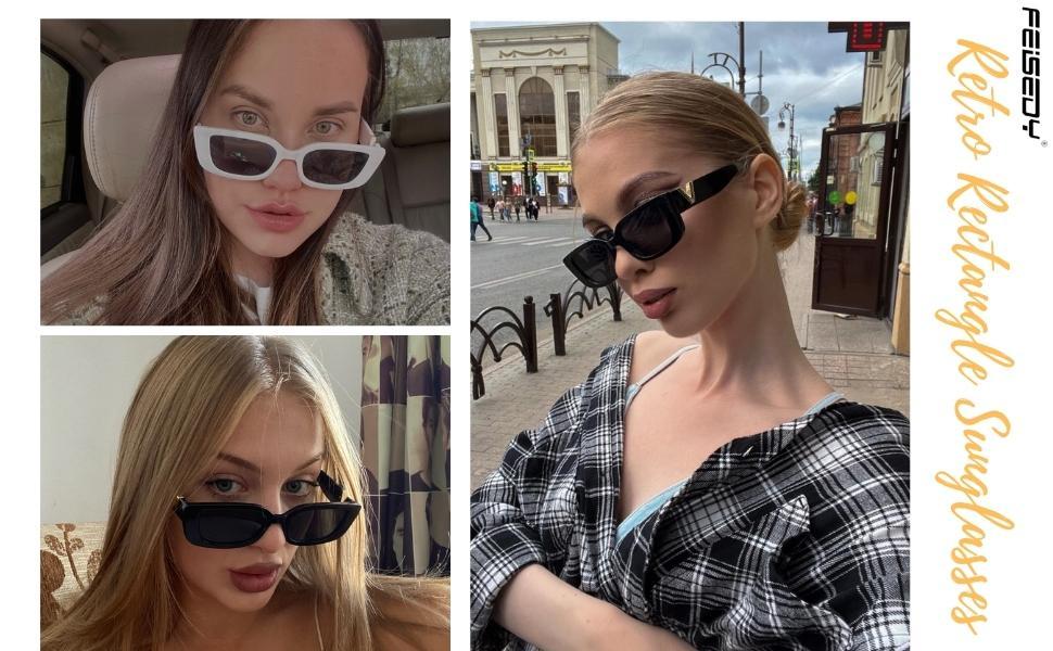FEISEDY Rectangle Sunglasses for Women Men Retro 90s Y2k UV400 Protection Square Fram Sunnies